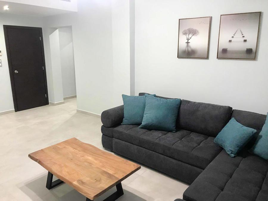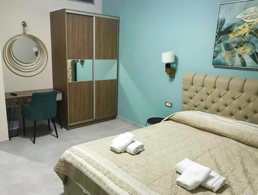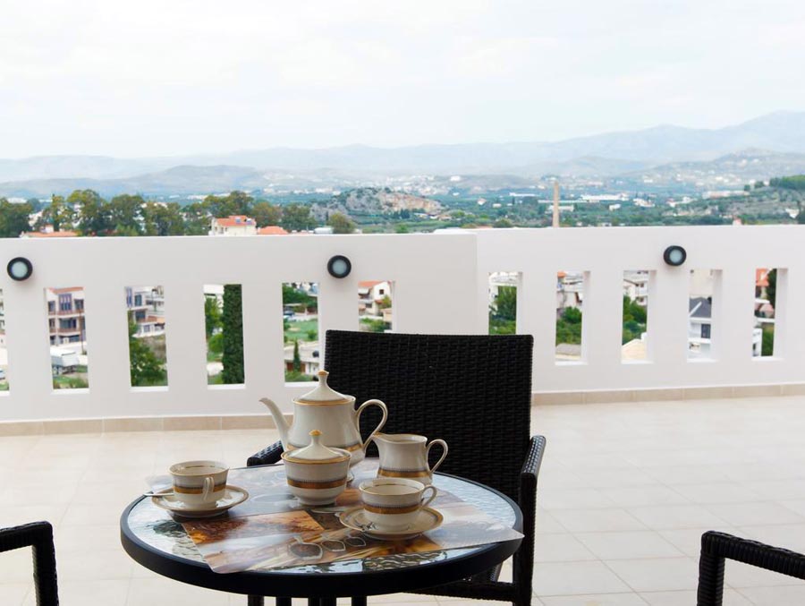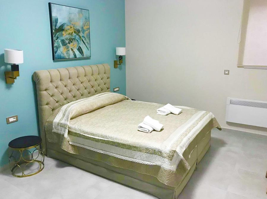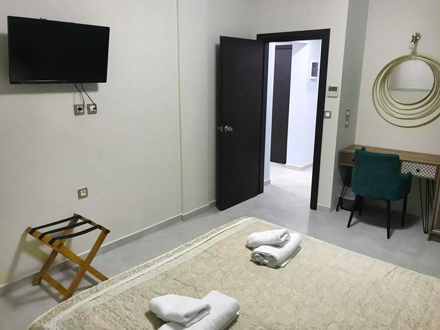 Our one bedroomed apartment on the first floor at Aenaon is our largest accommodation. It is great for families and has one separate bedroom with a queen-sized bed and a large corner sofa bed plus all comforts of a top class hotel to make your stay in Nafplio a very pleasant experience.